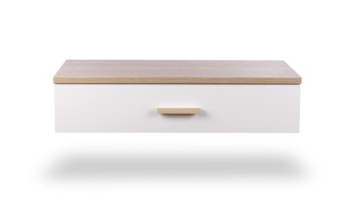 - Szafka wykonana z płyty laminowanej koloru ,,biel alpejska oraz dąb sonoma'' grubości 18mm oraz ekologicznego drewna bukowego.