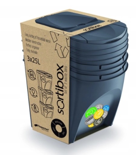 Zestaw 3 koszy do segregacji odpadów 25 litrów - szkło, papier, plastik.