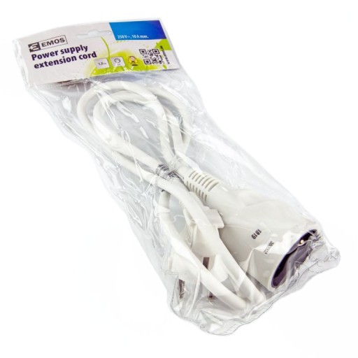 Przedłużacz pojedynczy z uziemieniem biały 1,5m P0111 EMOS