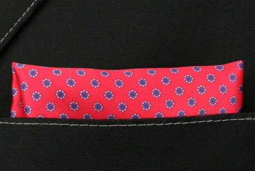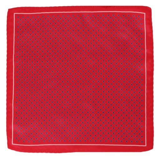 Czerwona Elegancka Męska Poszetka -ALTIES- w Małe Granatowe Kwiatki