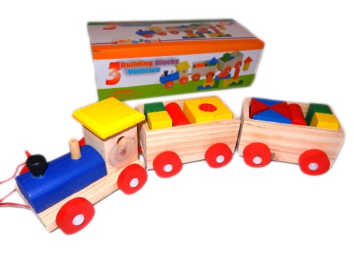DREWNIANA KOLEJKA Z KOLOROWYMI KLOCKAMI.