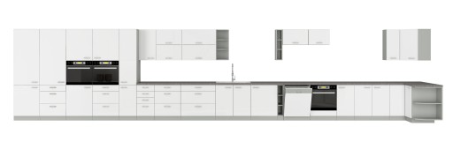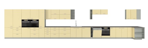 - istnieje możliwość dokupienia innych szafek (rozmiar, kolor), aby skompletować inny układ lub mniejszą kuchnię.