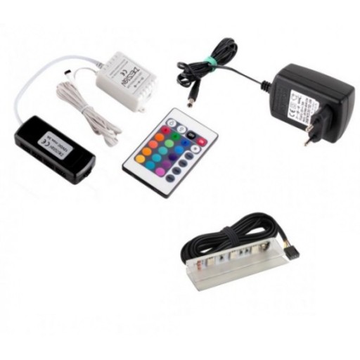 Zestaw wyposażony w sterownik z pilotem pozwalającym wybrać dowolny kolor świecenia.