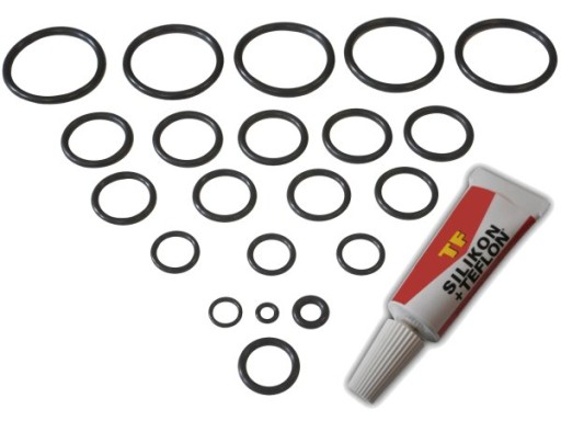 Kompletny zestaw zawiera 21 O-ringów w zależności od tego, czy samochód jest wyposażony w ręczną czy automatyczną skrzynią biegów,