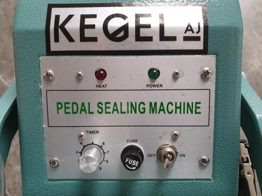 Impulsowa zgrzewarka na statywie z nadrukiem.