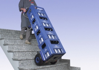 Model Ergo pozwala utrzymać wyprostowaną postawę na schodach i zachować maksymalną kontrolę nad transportowanym towarem. Idealny do beczek po piwie, stosów opon, itp.