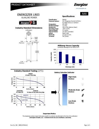 inne oznaczenia: LR03 / AAA / R03 / MN 2400 / Micro / AM4 / E92