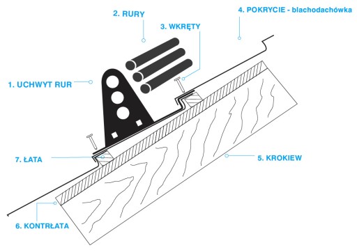 Uwaga! Powyższe informację są wynikiem zebranych informacji oraz naszego doświadczenia. Nie można powyższych informacji traktować jako instrukcji montażu. Stosowanie komunikacji dachowej powinno być zgodne z projektem technicznym opracowanym dla określonego obiektu, z uwzględnieniem wymagań Polskich Norm i obowiązujących przepisów techniczno-budowlanych. Aby dodać do zestawu dodatkowe wsporniki, skorzystaj z elementów pojedynczych.