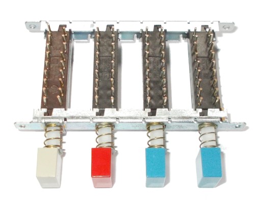Isostat firmy Unitra 4 x - 2 x niebieski i czerwony zależne, biały przełączający.