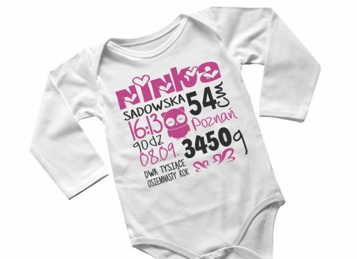 Body z nadrukiem - metryczka, wyróżniające się świetną jakością materiału i szycia. 100 % mięciutka bawełna, produkt polski, pochodzący z naszej szwalni i drukarni. Jesteśmy producentem odzieży wyłącznie z polskich materiałów.