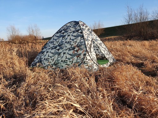 Mega duży, automatyczny namiot podlodowy firmy Mistrall bez problemu ochroni przed wiatrem, śniegiem i mrozem. Szkielet wykonany z super wytrzymałej, sprężystej stali, dzięki czemu po wyciągnięciu z pokrowca, sam się rozkłada. Dzięki wodoszczelnemu, nie przepuszczającemu wiatru materiałowi, szerokim, podwójnie przeszywanym zabezpieczeniom szwów i mocnej szczelnej podłodze namiot sprawdzi się w długich wyprawach, bez znaczenia jaka będzie pogoda. Namiot posiada rozsuwany przedni panel i okienko z zamkiem, dzięki czemu każdy wędkarz dostosuje go do własnych potrzeb. Podłoga posiada dość obszerny, rozsuwany otwór, dzięki czemu możesz łowić spod lodu bez wychodzenia z namiotu. Namiot posiada wygodną i poręczną torbę, która zdecydowanie ułatwia transport na łowisko. Namiot dla wędkarzy o wysokich wymaganiach sprzętowych. Namiot w rzeczywistości wygląda rewelacyjnie !!! Przebój rynkowy !!!