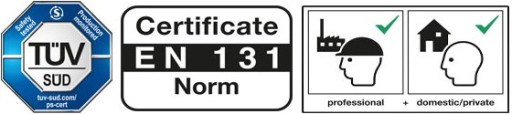 - Antypoślizgowe, szerokie stopki zapewniające bezpieczne stanie na drabinie