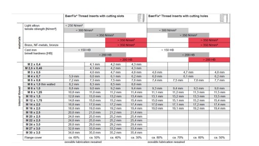 przy stosowaniu tulejek samogwintujacych firmy BaerFix