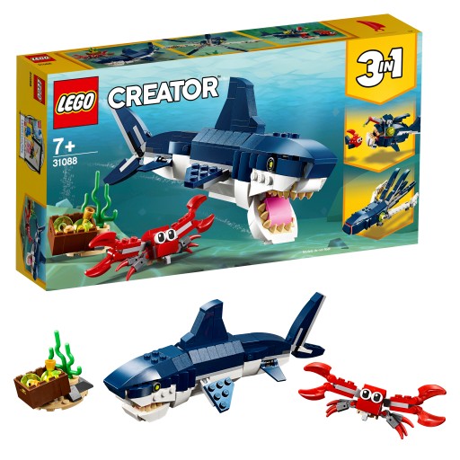 • Zestaw LEGO® Creator 3 w 1 umożliwia zbudowanie trzech różnych modeli. Zbuduj rekina i kraba ze skarbem,