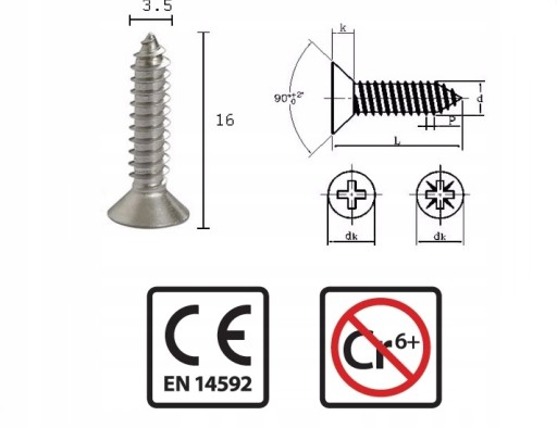 WKRĘTY DO MEBLI, DREWNA,PŁYT WIÓROWYCH 3.5X16 50 SZTUK