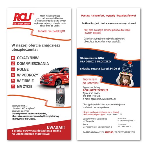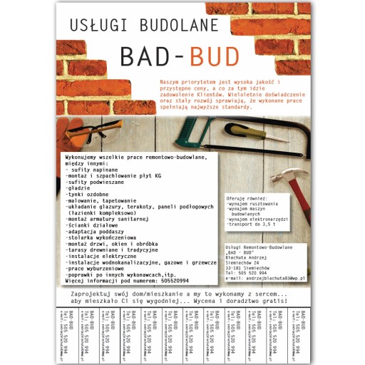 Bez trudu zaprojektujemy dla Ciebie profesjonalną ulotkę dwustronną, plakat, baner, nadruk na tablicę lub naklejkę reklamową.