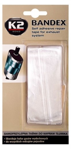 K2 BANDEX to samoprzylepna taśma do napraw tłumika. Likwiduje hałas układów wydechowych we wszystkich rodzajach pojazdów. Bardzo ekonomiczna i odporna na wysokie temperatury.