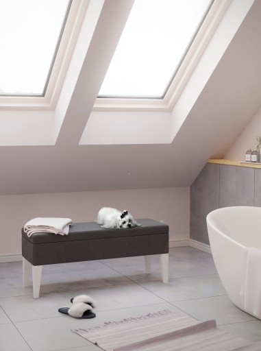 Ławka MONTANA Meble-Stelmach - to bukowe nóżki połączone z miękkim, tapicerowanym siedziskiem, będącym jednocześnie praktycznym schowkiem