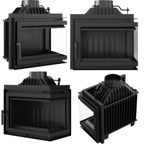Narożny wkład kominkowy o drzwiach typu BS (szyby łączone). Dzięki takiemu rozwiązaniu możesz podziwiać ogień z dwóch stron w dwóch pomieszczeniach jednocześnie. Idealne rozwiązanie do łączonych pomieszczeń.