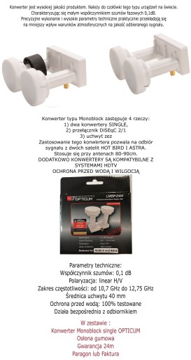 jest wysokiej jakości, markowym konwerterem przeznaczonym do podłączenia jednego tunera i odbioru programów z dwóch satelit: