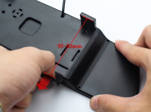 Montaż na lusterku przy pomocy ruchomych uchwytów.