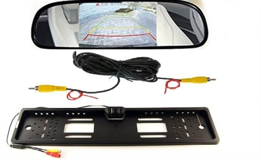MONITOR 5" NA LUSTERKO + KAMERA COFANIA W RAMCE REJESTRACYJNEJ KOLOROWA