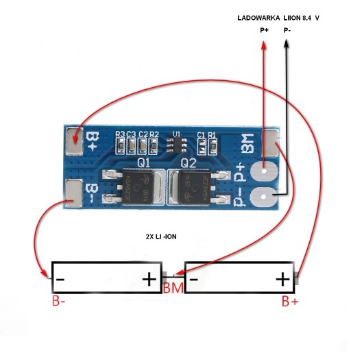 BMS układ zabezpieczający 2S 8A BMS Li-ion