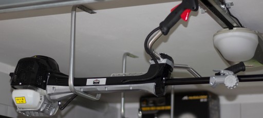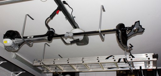 Haki mocowane do sufitu lub półki, na których można z powodzeniem przechowywać narzędzia ogrodnicze czy sprzęt sportowy.