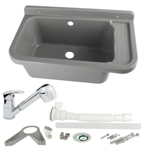 Zestaw - Komora gospodarcza 50x34x21 - szary granit + Bateria zlewozmywakowa stojąca z wyc. natrys. ATUT ( KF.KOMORA.50SZ/B398 )