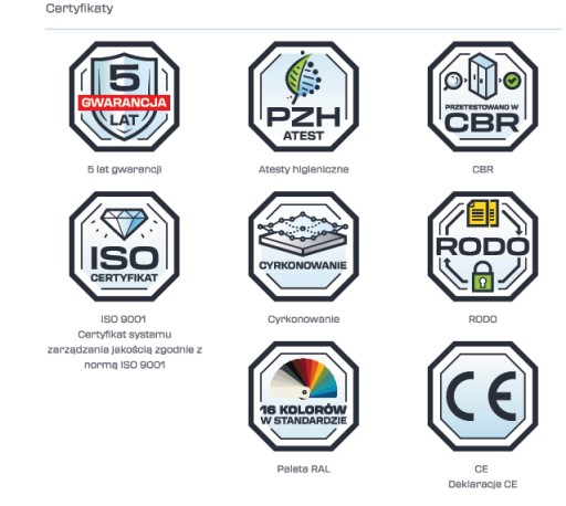 Producent Polski. Na zamówienie dostępne są kolory w/g palety RAL.