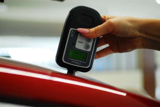 Miernik podpowiada prawdopodobieństwo wystąpienia szpachli bądź grubej warstwy lakieru.