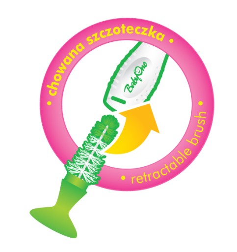 Szczotka z przyssawką „SAMOSTOJĄCA” pomaga w dokładnym czyszczeniu zarówno butelki, jak i smoczka. Szczotka posiada przyssawkę, która umożliwia przyczepienie jej do płaskich powierzchni, dla ułatwienia osychania. Szczotka do butelki jest zakończona miękką gąbką, która dostosowuje się do kształtu butelki. W uchwycie rączki jest schowana mała szczotka do czyszczenia smoczka. Miękkie włosie szczotek i gąbka docierają do trudno dostępnych miejsc. Szczotki wykonane są z trwałych i bezpiecznych materiałów, nie zawierających Bisfenolu A.