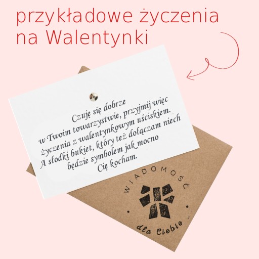 Do bukietu dodamy gratis Twoje życzenia w eleganckiej kopercie. Paczka będzie ozdobnie zapakowana i z pewnością wzruszy obdarowaną osobę. Nie ma lepszego sposobu na personalizowaną słodką niespodziankę na Walentynki!