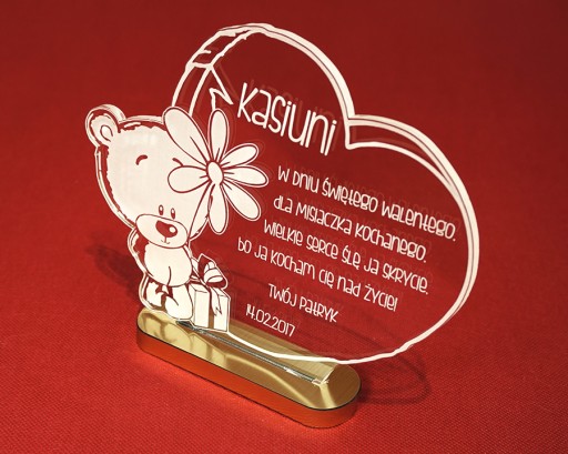 Piękny prezent na Walentynki - statuetka akrylowa z Twoją dedykacją
