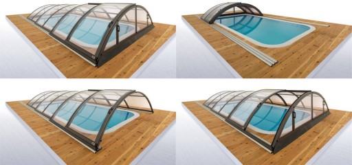 Oferowany jest szeroki asortyment rozwiązań w zależności od materiałów i wykonania zadaszenia, jak również rozmiarów dopasowanych do każdego rodzaju basenu.