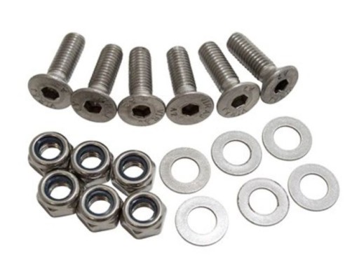 Zestaw nierdzewnych śrub + nakrętki i podkładki do zawiasów maski, pokrywy silnika w Land Rover Defender.