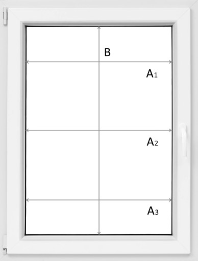 Zmierz szerokość szyby z uszczelkami (najlepiej w trzech miejscach A1, A2, A3) i odejmij 2 mm od najmniejszego wymiaru