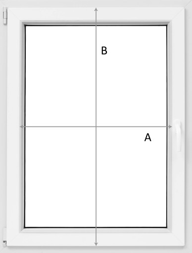 Jest to szerokość pomiędzy listwami przyszybowymi. Pomiar pobieramy w miejscu łączenia listwy przyszybowej z ramą okna. Szerokość A jest szerokością tkaniny