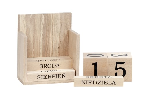 Drewniany kalendarz na biurko w naturalnej barwie - niemalowany.