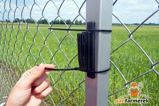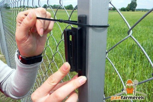 - Znajdujące się w zestawie izolatory, należy przymocować przy pomocy opasek kablowych do istniejących słupków ogrodzenia. Taki montaż można stosować na słupkach drewnianych, metalowych lub betonowych. Bez zbędnego wiercenia!
