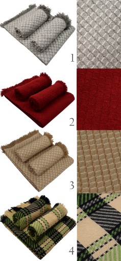 Komplet narzut wykonany z materiału imitującego wełniany splot tzw. tkany. Wysoka jakoś materiału, przyjemny w dotyku, elegancki i klasyczny. Łatwy w utrzymaniu, można prać w pralce.