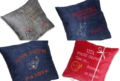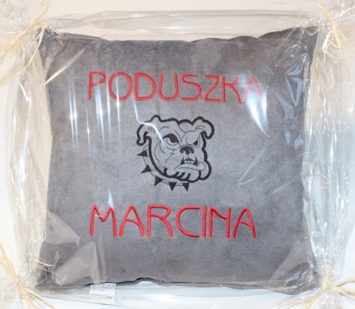 Tekst na poduszce w całości wyszywany trwałymi nićmi - nie drukowany