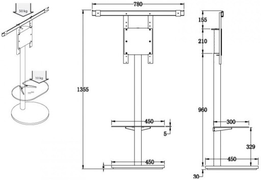 - Udźwig: do 50 kg. (do 55"); półki do 10 kg