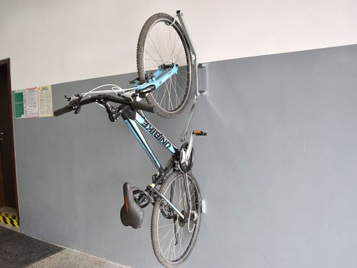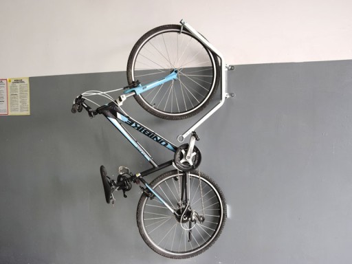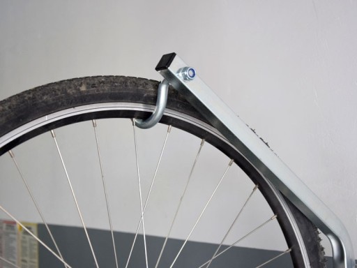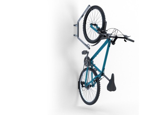 Uniwersalny wieszak na jeden rower z koluchem umożliwiającym zapinanie rowerów za ramę każdym rodzajem zapięcia. Jego podstawową zaletą jest możliwość regulacji położenia wieszaka w płaszczyźnie poziomej. Dzięki temu wieszak doskonale sprawdza się przy ograniczeniach miejscowych. Stanowi praktyczne i uniwersalne rozwiązanie do przechowywania rowerów zarówno w małych, jak i dużych rowerowniach. Wieszak dodatkowo wyposażony jest w gniazdo do osadzania koła tylnego co pozwala stabilizować tylną część roweru i zabiegać brudzeniu się ściany.