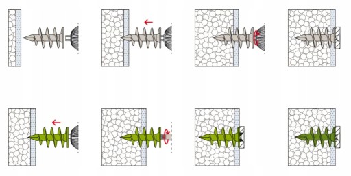 - Specjalny spiralny gwint wcina się w materiał płyty izolacyjnej.