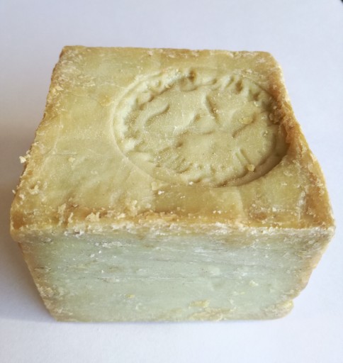 Tradycyjne mydło oliwkowo - laurowe z Aleppo w kostce . Zawartość oleju laurowego wynosi nie mniej niż 55%.
