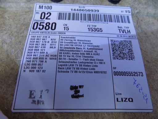 3G0867419 ПАНЕЛЬ ДВЕРИ ЗАДНЯЯ ЛЕВАЯ PASSAT B8 КОЖАНАЯ