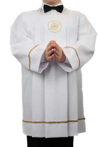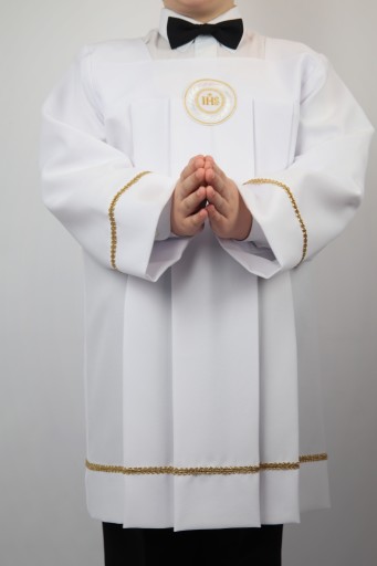 - Komża obszyta na rękawach i dole komży złotą taśmą
