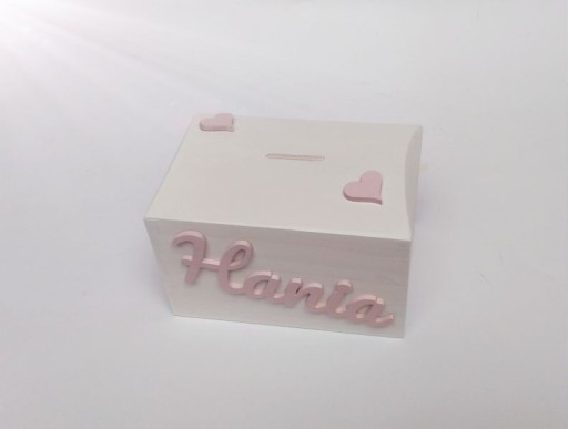 Piękna, ręcznie malowana skarbonka. Od spodu wysuwana deseczka.