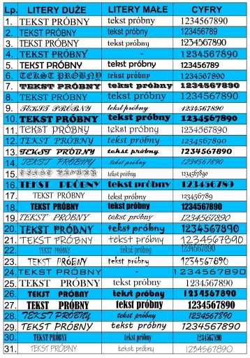 RODZAJE CZCIONEK DO GRAWEROWANIA